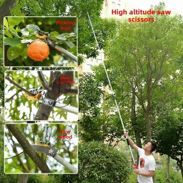 Die Schere eignet sich nicht nur zum Ernten von Obst, sondern auch zum Schneiden von Blumen und Sträuchern. Im Lieferumfang enthalten sind sowohl eine Schere als auch eine Säge zum Schneiden von Zweigen in der Höhe.