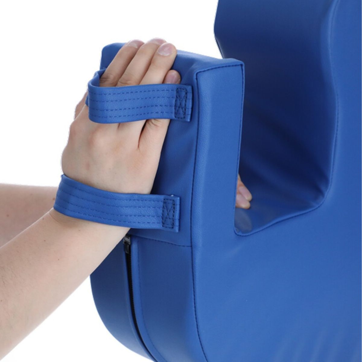 Die spezielle Form trennt die Beine und verringert den Druck auf die Haut. Erhöht den Komfort bei längerem Liegen.