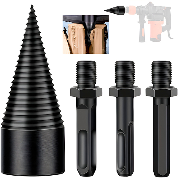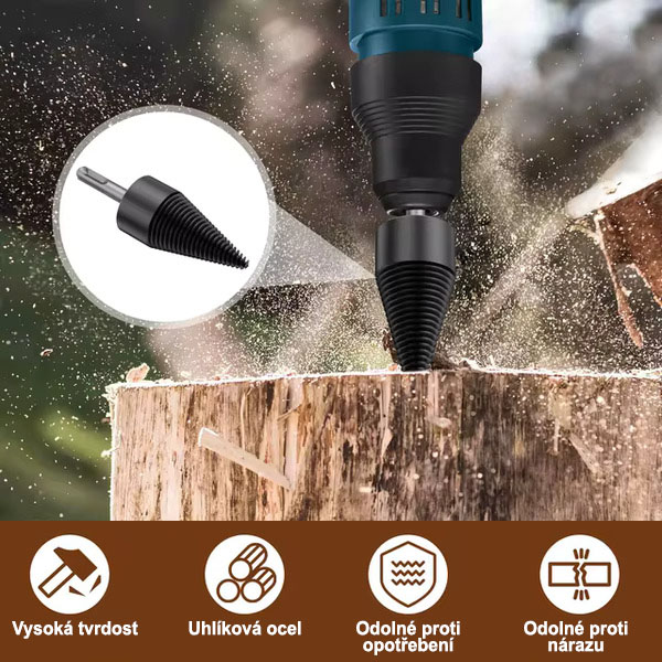 Stecken Sie den Spaltkegel in die elektrische Bohrmaschine und schon können Sie mit dem Spalten von Holz beginnen.